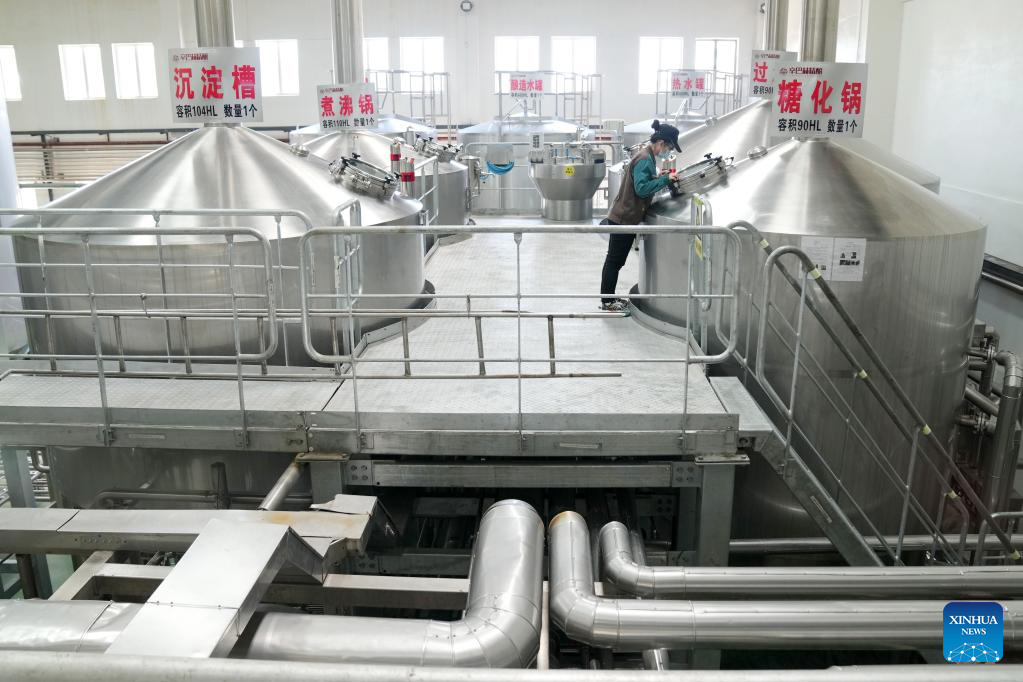 A staff member works at a beer company at Suifenhe Area of China (Heilongjiang) Pilot Free Trade Zone, June 8, 2022. (Xinhua/Wang Jianwei)