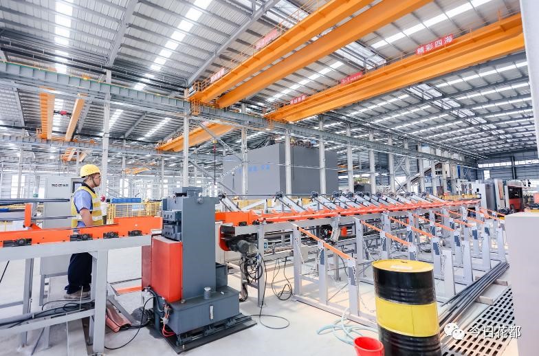 The components production line of the factory, which is equipped with advanced large-scale automated machinery and equipment, including intelligent steel welding robots, a smart bar bending center, and computer numerically controlled steel straightening and cutting machines, runs in order with high efficiency.
