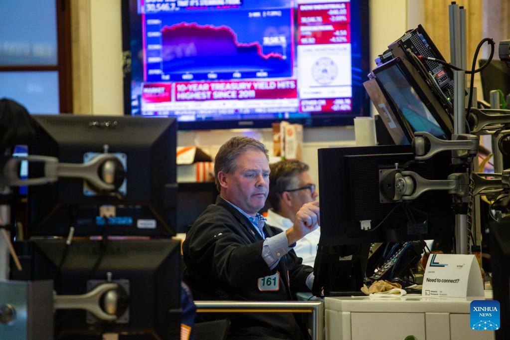 The Dow Jones Industrial Average tumbled 876.05 points, or 2.79 percent, to 30,516.74. The S&P 500 dropped 151.23 points, or 3.88 percent, to 3,749.63. The Nasdaq Composite Index shed 530.79 points, or 4.68 percent, to 10,809.23. (Photo by Michael Nagle/Xinhua)