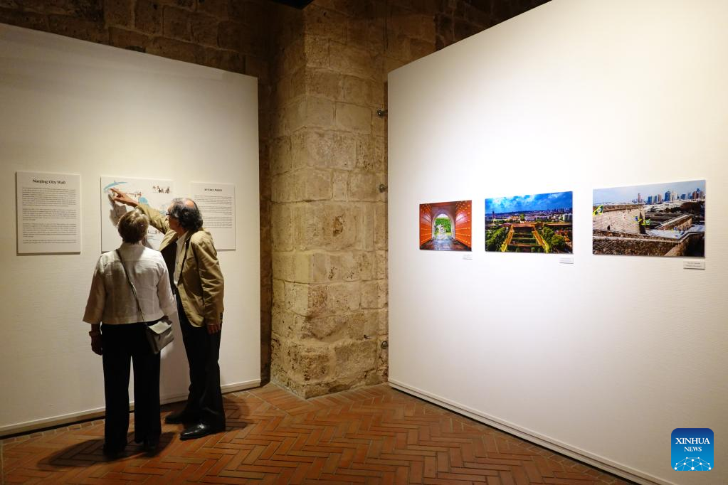 The exhibition, jointly organized by the China Cultural Center in Tel Aviv, the Municipality of Akko, and other bodies from both countries, demonstrates about 40 photos of Nanjing, the capital of six dynasties in ancient China, and Akko, one of the first historical sites in Israel selected as world cultural heritages. (Xinhua/Wang Zhuolun)