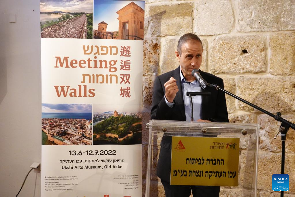 The exhibition, jointly organized by the China Cultural Center in Tel Aviv, the Municipality of Akko, and other bodies from both countries, demonstrates about 40 photos of Nanjing, the capital of six dynasties in ancient China, and Akko, one of the first historical sites in Israel selected as world cultural heritages. (Xinhua/Wang Zhuolun)