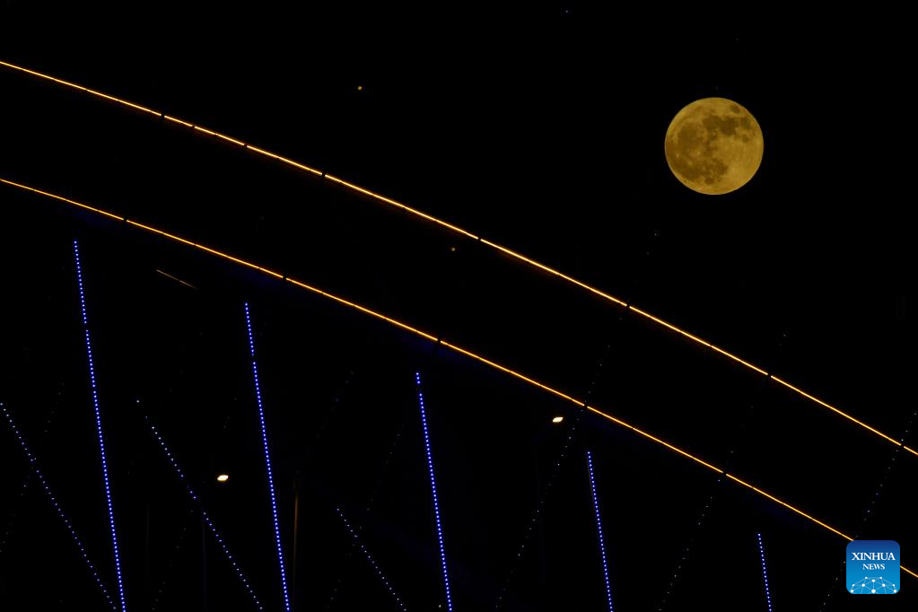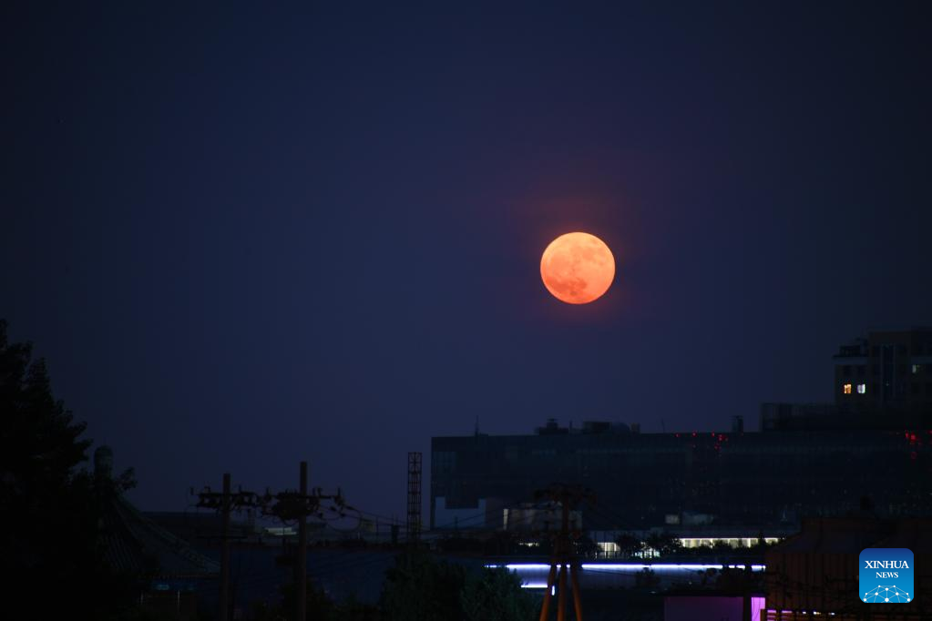 A supermoon is seen in the sky in Yinchuan, northwest China's Ningxia Hui Autonomous Region, June 14, 2022. (Xinhua/Wang Peng)