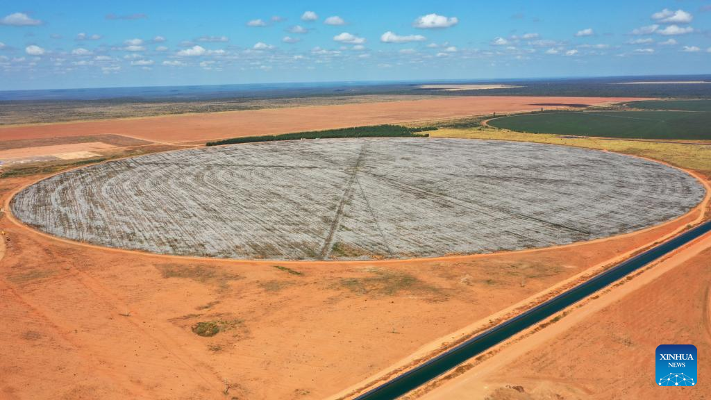 Photo taken on June 14, 2022 shows a cotton field in Bahia state, Brazil, June 14, 2022. Brazil is one of the world's leading cotton producers and exporters. (Photo by Lucio Tavora/Xinhua)