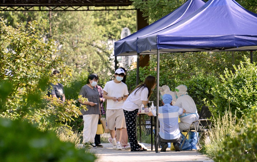 Residents take nucleic acid testing at Pingfang in Chaoyang District of Beijing, capital of China, June 14, 2022.