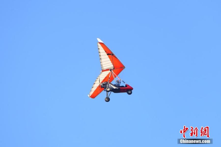 A player wearing delta-wing performs during the 2022 Jiangxi Aviation Sports Tourism Festival in Ji'an, east China's Jiangxi Province, June 14, 2022. (Photo: China News Service/Liu Zhankun)