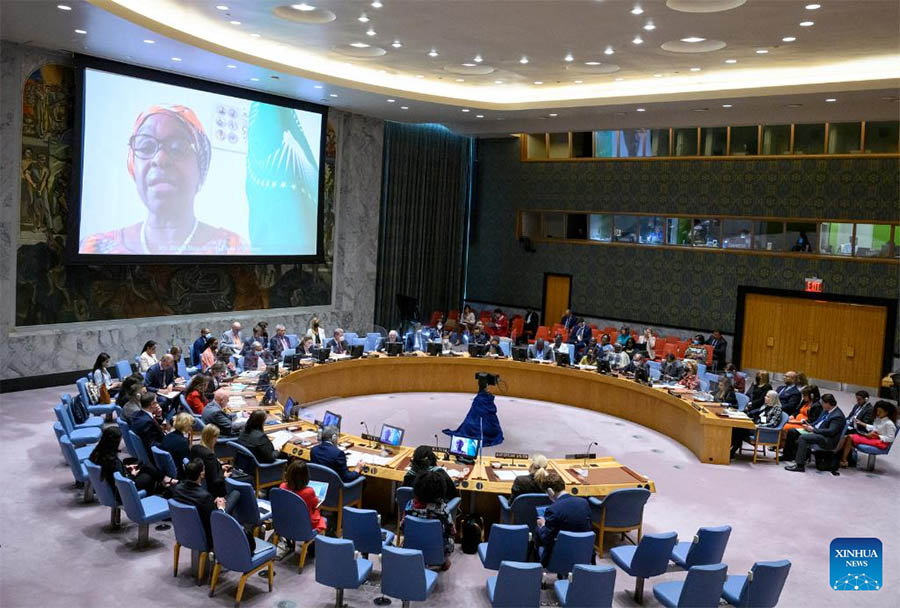 Photo taken on June 15, 2022 shows the Security Council ministerial-level open debate on women, peace and security at the UN Headquarters in New York. UN Secretary-General Antonio Guterres on Wednesday urged the international community to protect and promote women's rights amid "proliferating crises." (Loey Felipe/UN Photo/Handout via Xinhua)