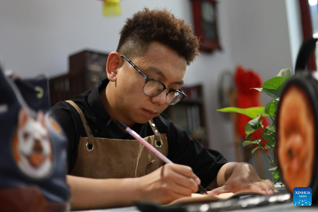 Wu, 34, has been focused on creating tailor-made leather objects carved with images of deceased pets. He is an inheritor of the intangible cultural heritage of Lianchi District, Baoding city, north China's Hebei Province.