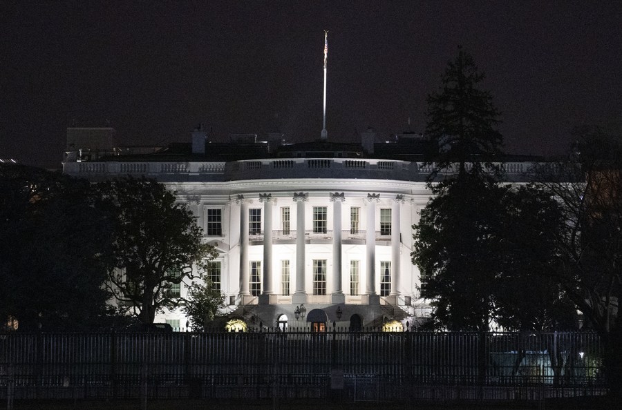 Photo taken on Feb. 21, 2022 shows the White House in Washington, D.C., the United States. (Xinhua/Liu Jie)