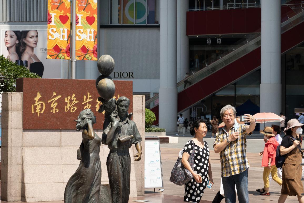 Photo taken on June 15, 2022 shows the bustling Nanjing Road pedestrian walkway in Shanghai. (Photo by Wang Gang/People’s Daily Online)