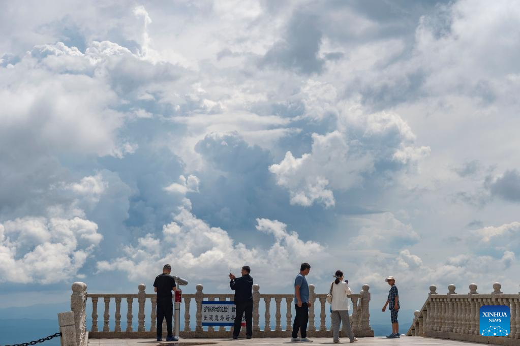 Tourists visit Dadingzi Mountain Forest Park in Raohe County, northeast China's Heilongjiang Province, June 19, 2022. (Xinhua/Xie Jianfei)