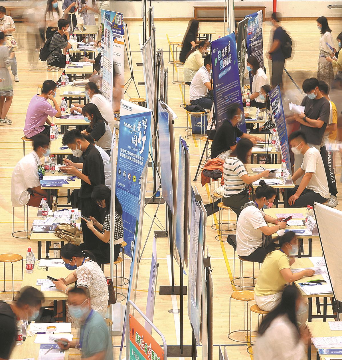 A special job fair is held at Nanjing University of Aeronautics and Astronautics in Jiangsu province last month. [YANG BO/CHINA NEWS SERVICE]