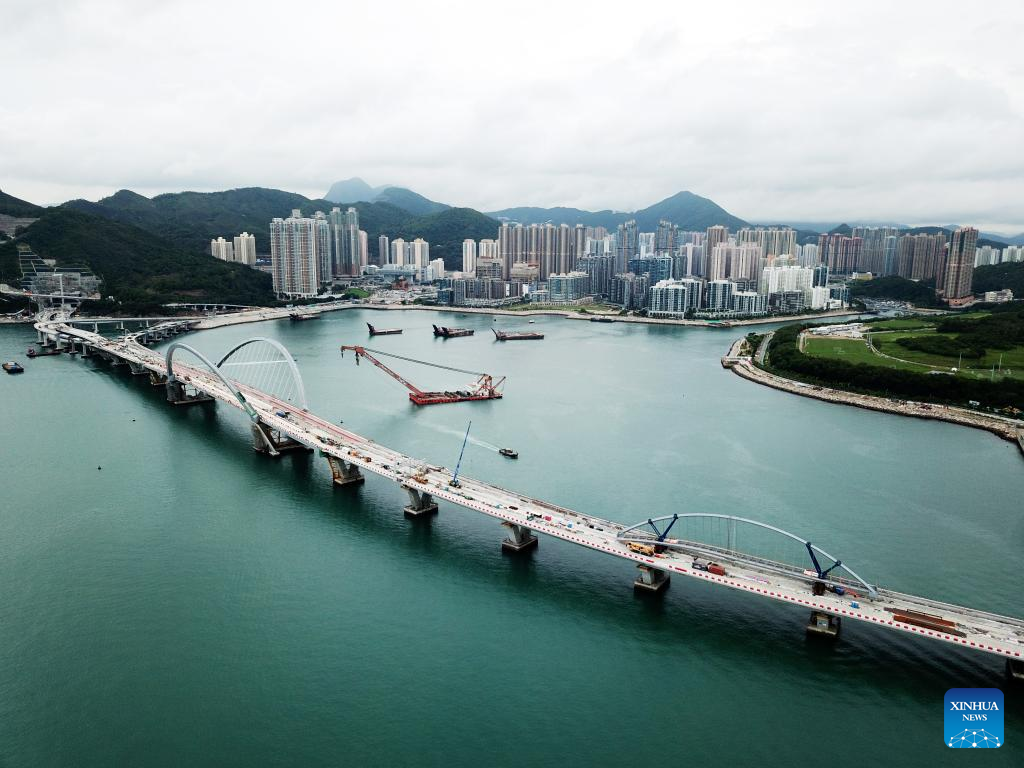 Aerial photo taken on May 31, 2022 shows the Tseung Kwan O bridge in south China's Hong Kong. This year marks the 25th anniversary of Hong Kong's return to the motherland. (Xinhua/Lui Siu Wai)