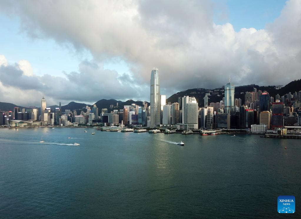 Aerial photo taken on May 31, 2022 shows the Two International Finance Centre (IFC) (top L) and the International Commerce Centre (ICC) (R) in south China's Hong Kong. This year marks the 25th anniversary of Hong Kong's return to the motherland. (Xinhua/Li Gang)