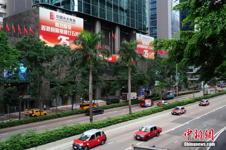 Posters celebrating the 25th anniversary of Hong Kong's return to the motherland are seen in the Hong Kong Special Administrative Region, June, 21, 2022. (Photo: China News Service/Zhang Wei)