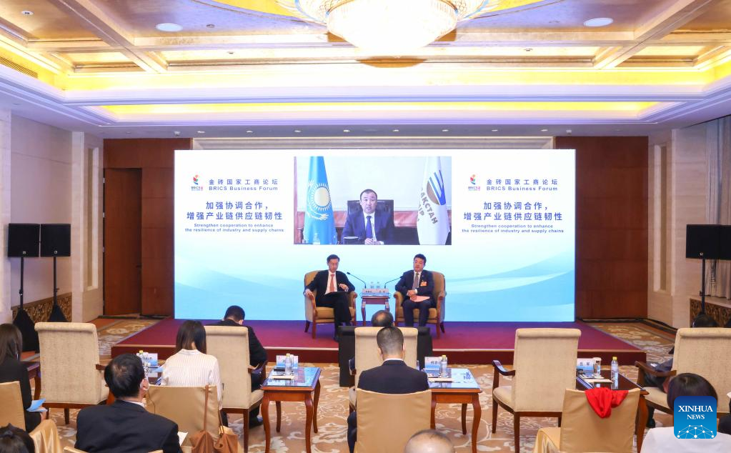 A panel discussion themed "Strengthen cooperation to enhance the resilience of industry and supply chains" is held during the BRICS Business Forum in Beijing, capital of China, June 22, 2022. (Xinhua/Yin Gang)