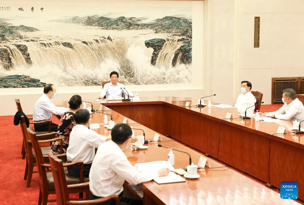 Li Zhanshu, a member of the Standing Committee of the Political Bureau of the Communist Party of China Central Committee and chairman of the National People's Congress (NPC) Standing Committee, attends a symposium of NPC deputies in Beijing, capital of China, June 22, 2022. (Xinhua/Pang Xinglei)