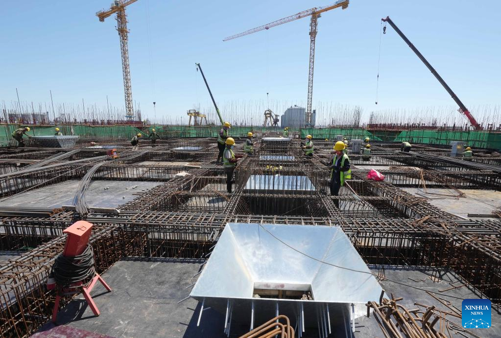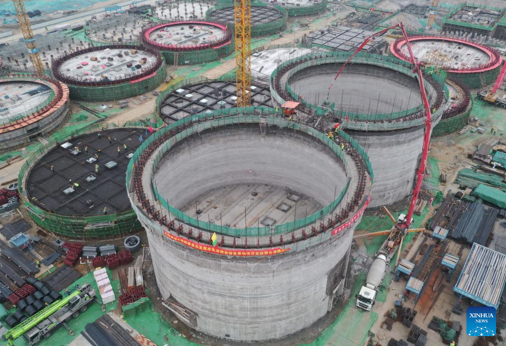 Photo taken on June 23, 2022 shows the construction site of the Haigang District grain reserve base project of Central Grain Reserve Qinhuangdao Direct Warehouse Co., Ltd. affiliated to China Grain Reserves Group (Sinograin) in Qinhuangdao, north China's Hebei Province.