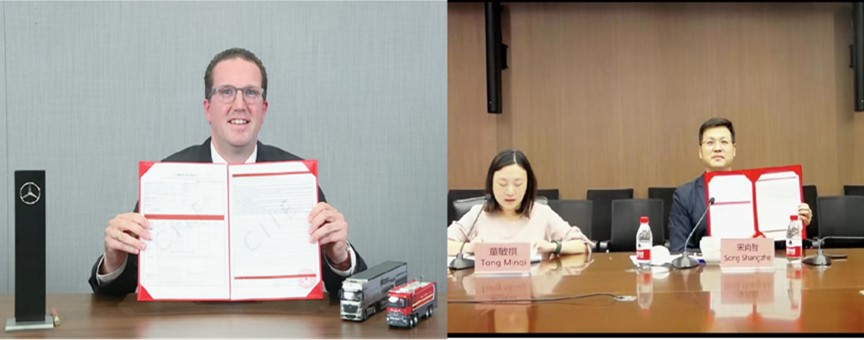 A promotional event for the commercial vehicle section of the 5th China International Import Expo (CIIE) is held online on June 8, 2022. Daimler Trucks and Buses (China) Ltd. signed an agreement with the CIIE Bureau to participate in the 5th CIIE during the event. (Photo from the official website of the CIIE)