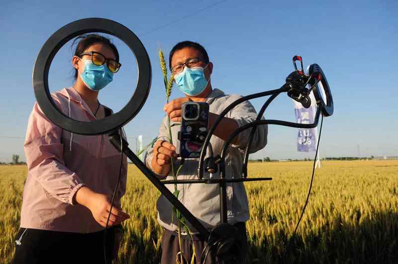 Local young people promote their improved wheat variety via livestreaming at Zhoudian village, Dongchangfu district, Liaocheng city, east China’s Shandong province, May 30, 2022. (People’s Daily Online/Zhang Zhenxiang)