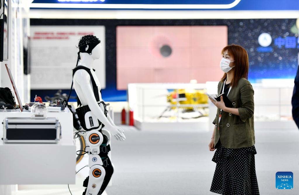 A participant visits an exhibition of the 6th World Intelligence Congress in north China's Tianjin, June 24, 2022. (Xinhua/Zhao Zishuo)