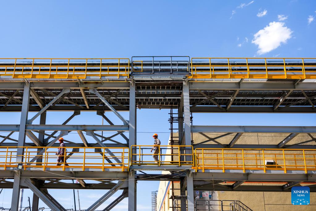 Constructors work at a construction site in Baotou, north China's Inner Mongolia Autonomous Region, June 24, 2022.