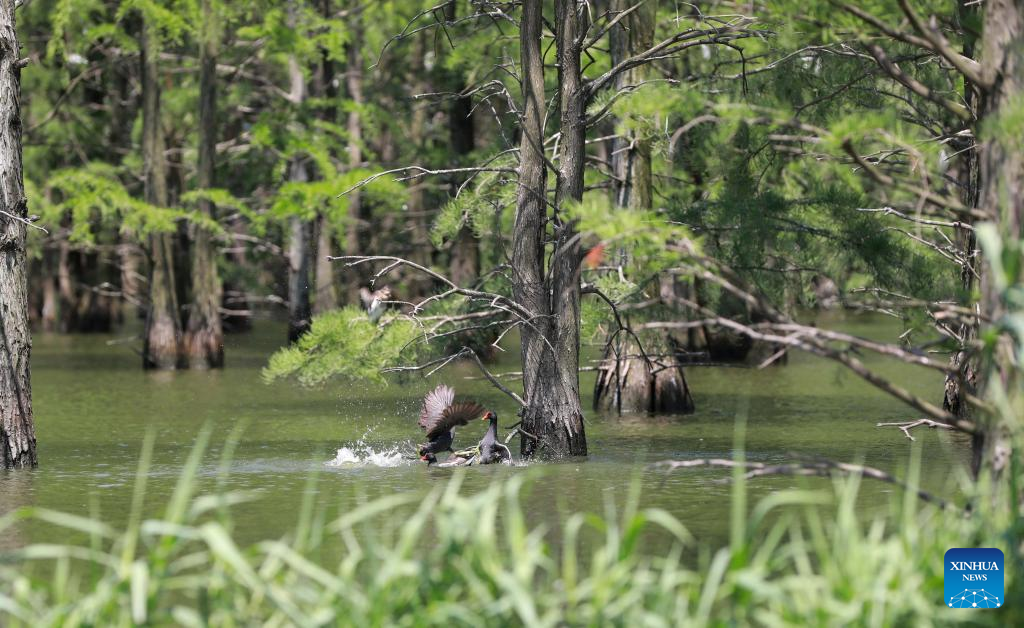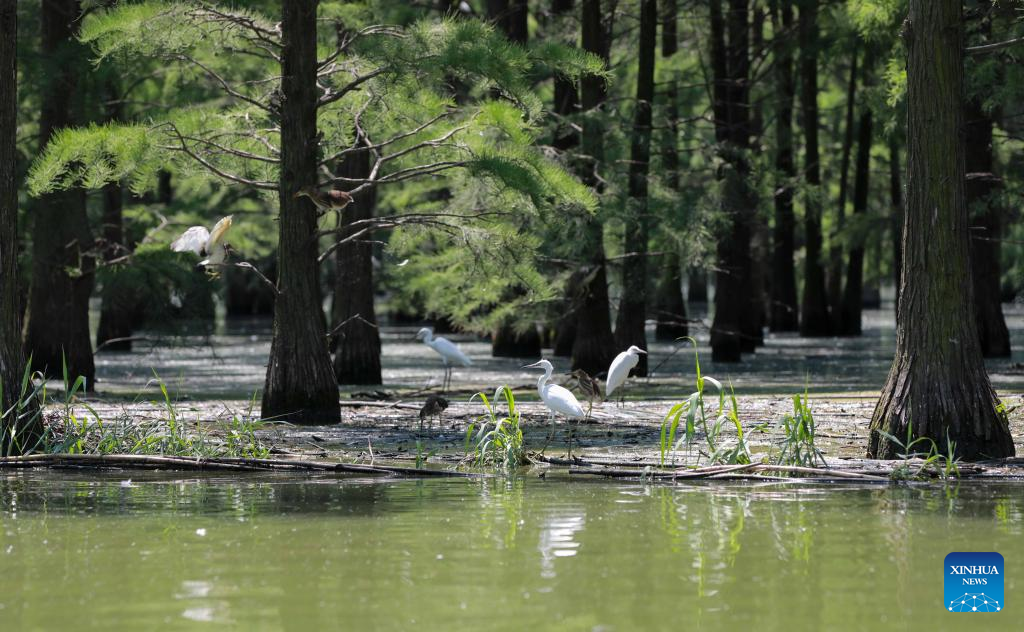 Birds are seen at the Chishan Lake National Wetland Park in Chuzhou, east China's Anhui Province, June 25, 2022. (Xinhua/Cao Li)