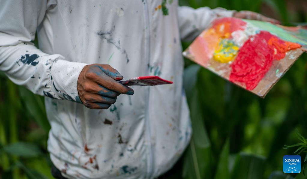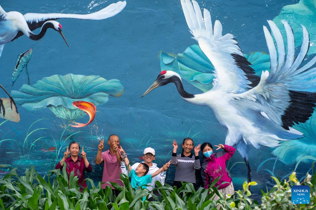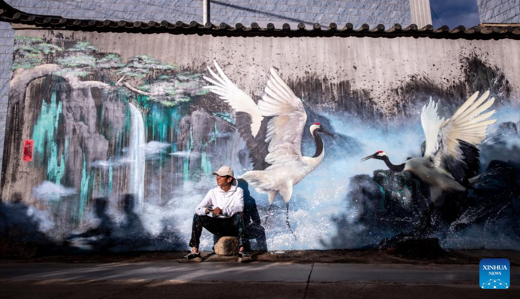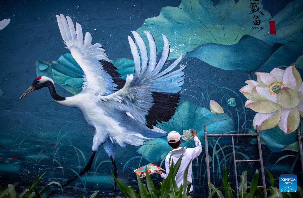 Pic story: mural artist paints wall paintings in hometown in SW China