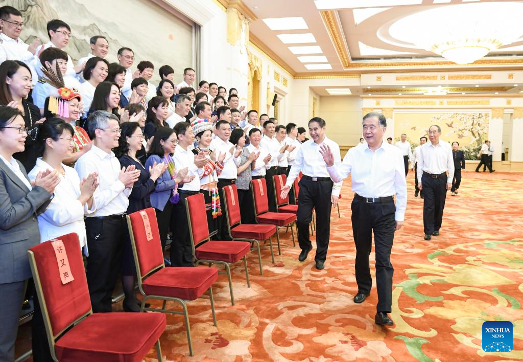 BEIJING, June 26 (Xinhua) -- China's top political advisor Wang Yang has urged Communist Party of China (CPC) delegates of Taiwan origin to earnestly perform their duties and make due contributions to the Party's 20th national congress.