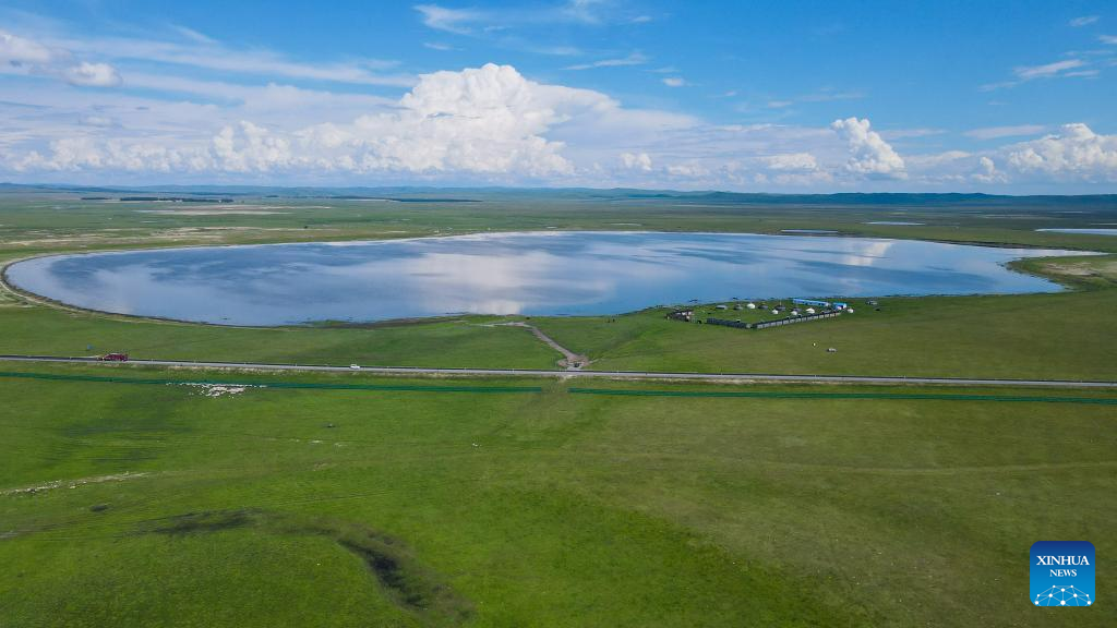 Photo taken on June 26, 2022 shows the landscape of the summer pasture in Xin Barag Zuoqi of Hulun Buir City, north China's Inner Mongolia Autonomous Region. (Xinhua/Wang Zecong)