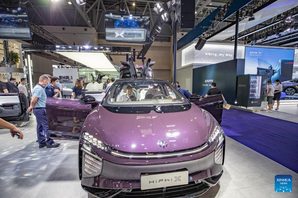 Visitors view a new energy vehicle during the 2022 Chongqing International Auto Exhibition in southwest China's Chongqing Municipality, June 25, 2022.