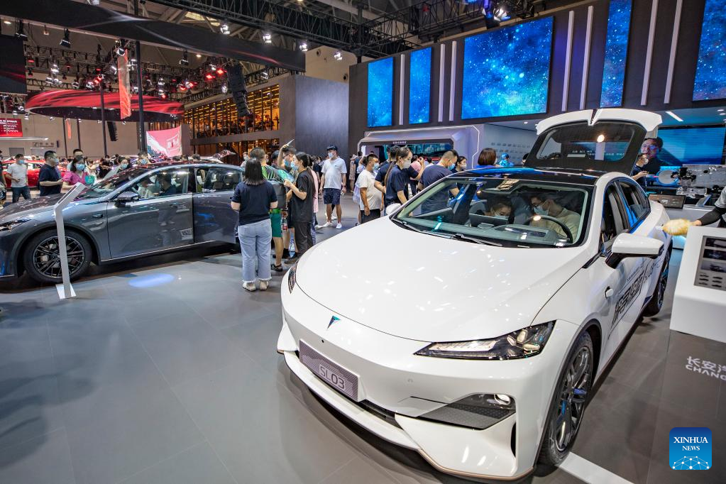 People visit the 2022 Chongqing International Auto Exhibition in southwest China's Chongqing Municipality, June 25, 2022.