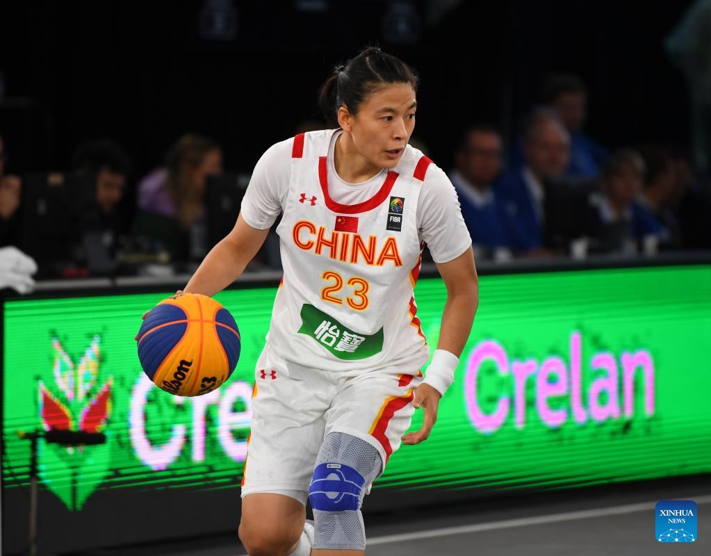 Wang Lili of China dribbles during the FIBA 3X3 World Cup women's quarterfinal match between China and Belgium in Antwerp, Belgium, June 25, 2022. (Xinhua/Ren Pengfei)