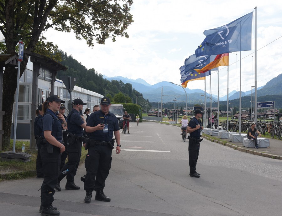 Police patrol outside the international media centre during the Group of Seven (G7) summit in Garmisch-Partenkirchen, Germany, June 26, 2022. (Xinhua/Guo Chen)
