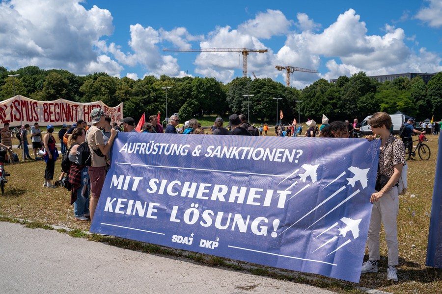 People take part in a demonstration in Munich, Germany, on June 25, 2022 to protest against Group of Seven (G7) summit, which is to be held in Bavaria. (Xinhua/Ren Ke)