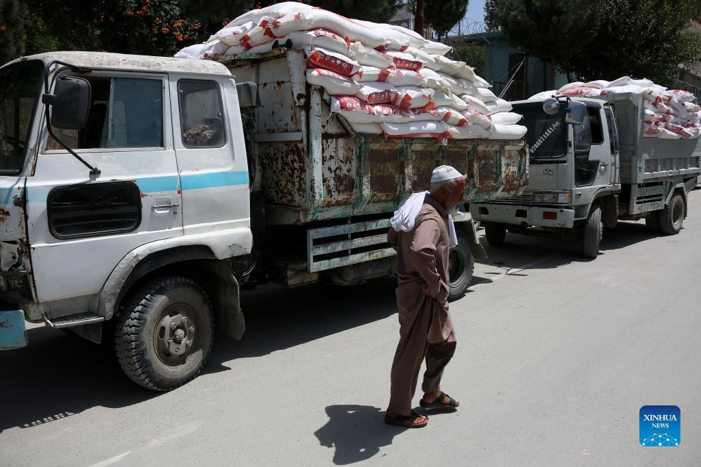 Photo taken on June 26, 2022 shows food aid donated by a Chinese firm in Khost province, Afghanistan. The first batch of food aid donated by a Chinese firm has reached the earthquake-hit region in eastern Afghanistan, an Afghan disaster management official said on Monday. (Photo by Saifurahman Safi/Xinhua)