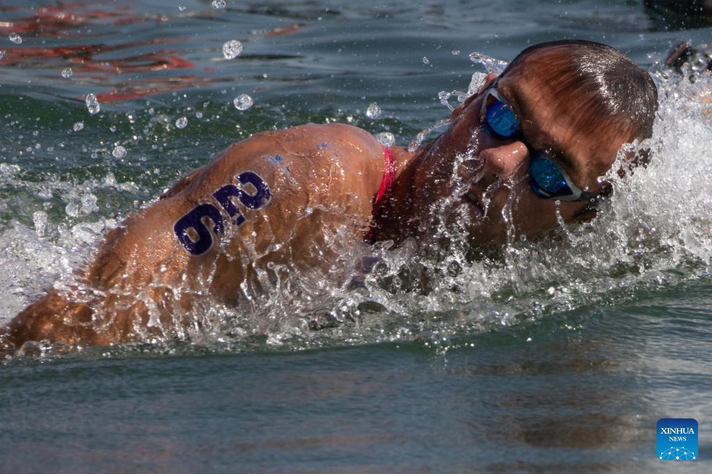 Silver medalist Gregorio Paltrinieri of Italy competes during the men's 5km open water at the 19th FINA World Championships in Budapest, Hungary, June 27, 2022. (Photo by Attila Volgyi/Xinhua)