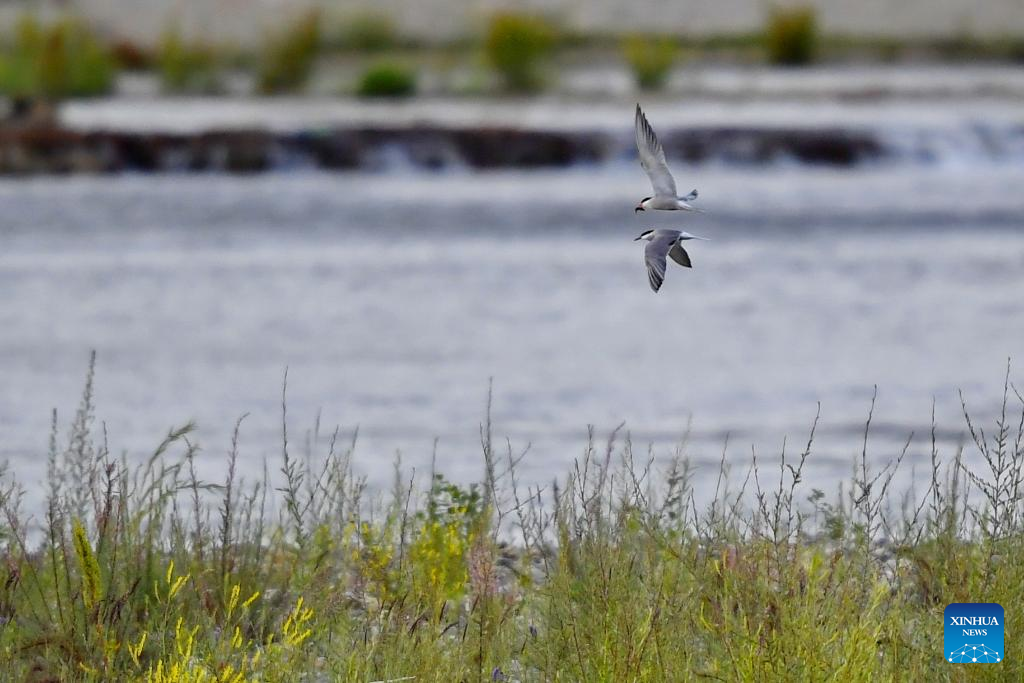 Terns fly over Lhasa River of Lhasa, southwest China's Tibet Autonomous Region, June 26, 2022. (Xinhua/Zhang Rufeng)