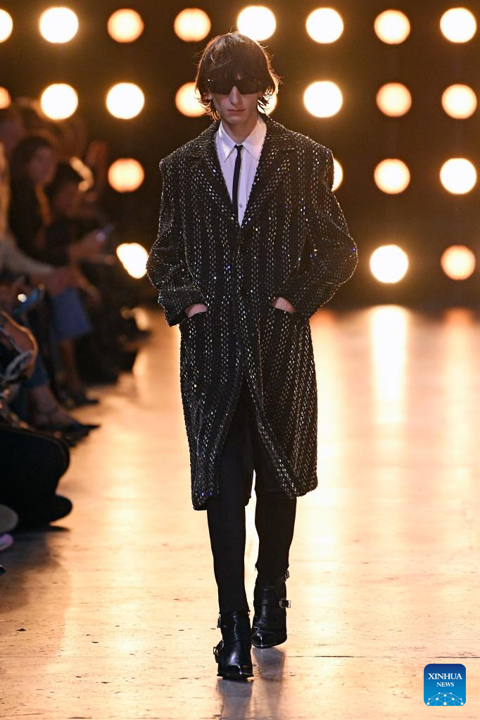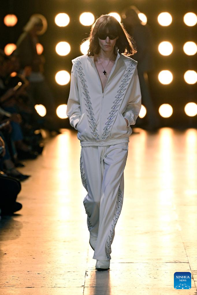 A model presents a creation from the Spring/Summer 2023 collection of Celine during the men's fashion week in Paris, France, on June 26, 2022. (Photo by Piero Biasion/Xinhua)