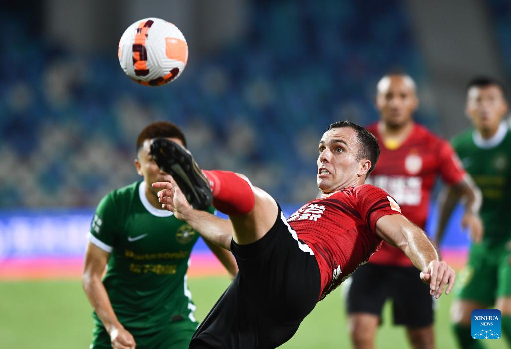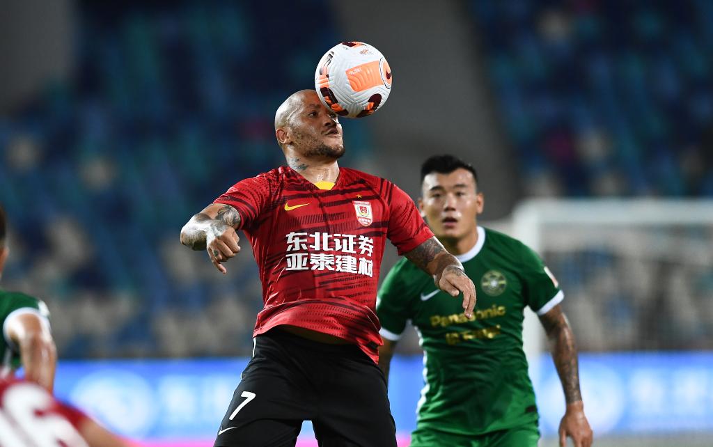 Serginho of Changchun Yatai competes during a 2022 season Chinese Football Association Super League (CSL) match between Changchun Yatai and Zhejiang in Haikou, south China's Hainan Province, June 29, 2022. (Xinhua/Yang Guanyu)