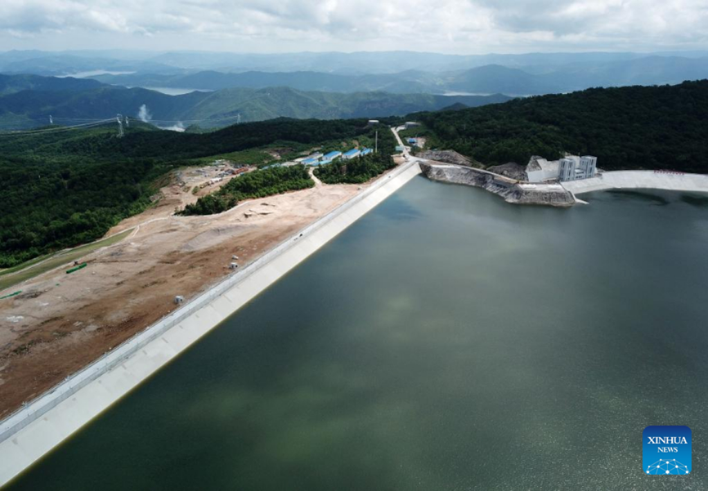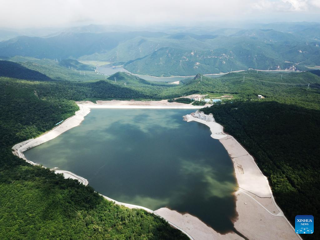 Aerial photo taken on June 29, 2022 shows the reservoir of the Huanggou pumped-storage hydropower station in Hailin City of Mudanjiang, northeast China's Heilongjiang Province. Huanggou power station, the pumped-storage hydropower station with the highest latitude in China, was put into full operation on Wednesday. The power station has a total installed capacity of 1.2 million kW. (Xinhua/Wang Jianwei)