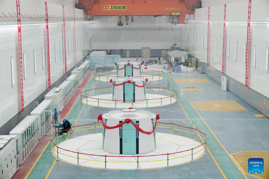 Staff members work at the Huanggou pumped-storage hydropower station in Hailin City of Mudanjiang, northeast China's Heilongjiang Province, June 29, 2022. Huanggou power station, the pumped-storage hydropower station with the highest latitude in China, was put into full operation on Wednesday. The power station has a total installed capacity of 1.2 million kW. (Xinhua/Wang Jianwei)