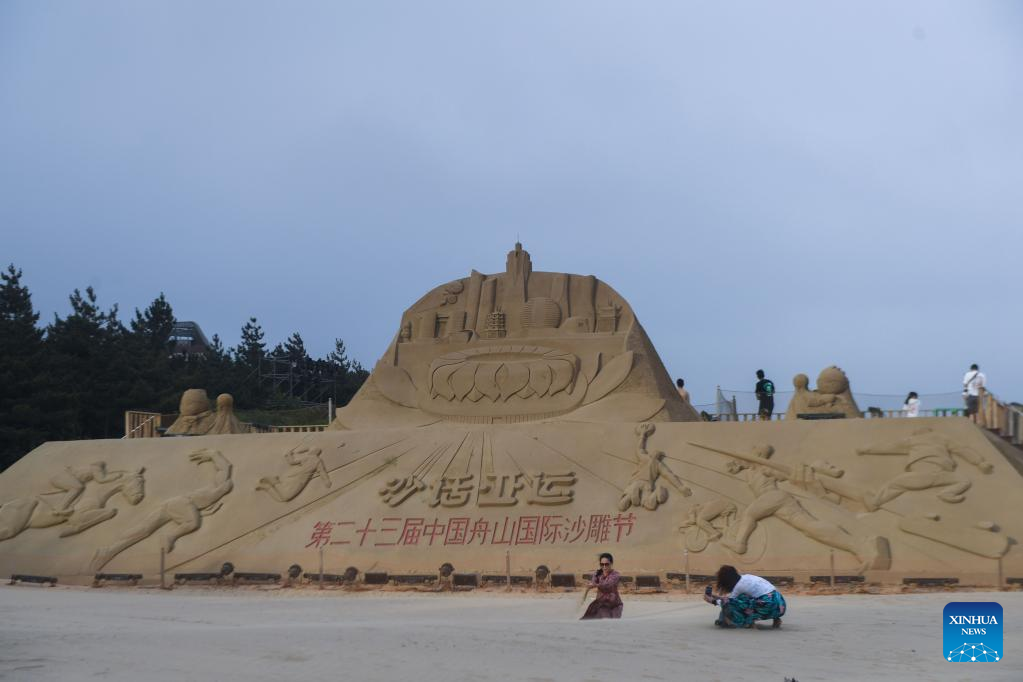 23rd Zhoushan Int'l Sand Sculpture Festival opens in China's Zhejiang