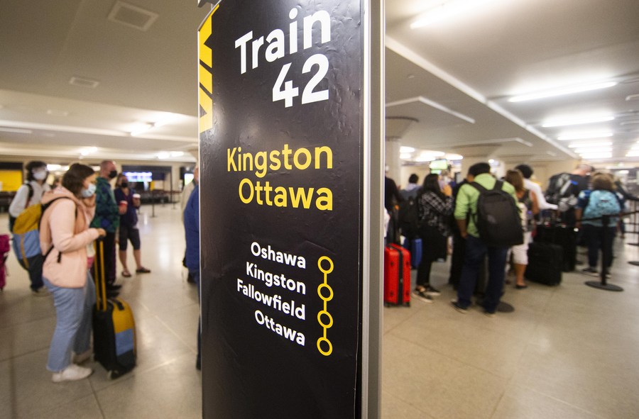 People line up at Union Station in Toronto, Ontario, Canada, on June 20, 2022. (Photo by Zou Zheng/Xinhua)