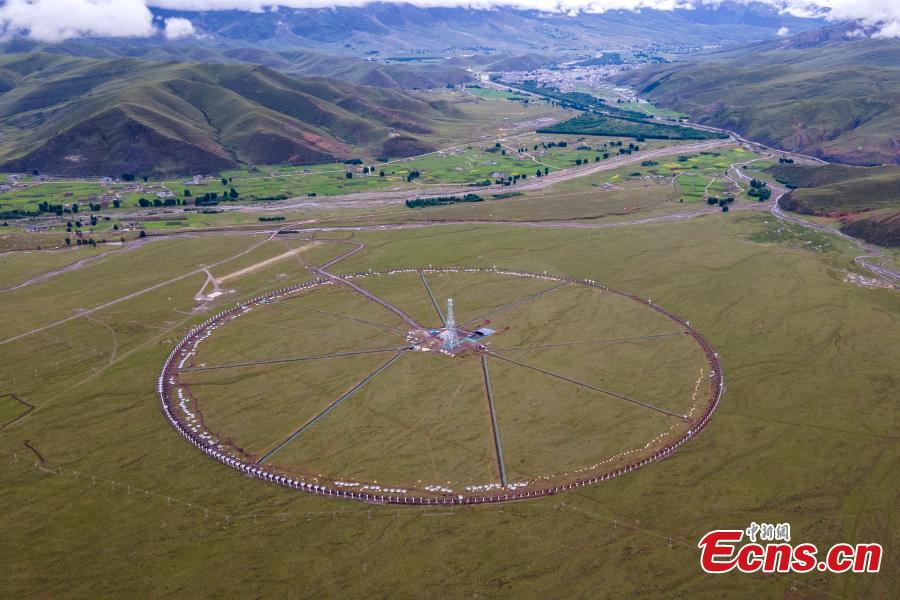 Aerial view shows the construction site of the Solar Radio Telescope (the Meridian Project phase II) in Daocheng county, Ganzi Ganzi Tibetan Autonomous Prefecture, southwest China's Sichuan Province, June 29, 2022. (Photo: China News Service/Liu Zhongyan)
