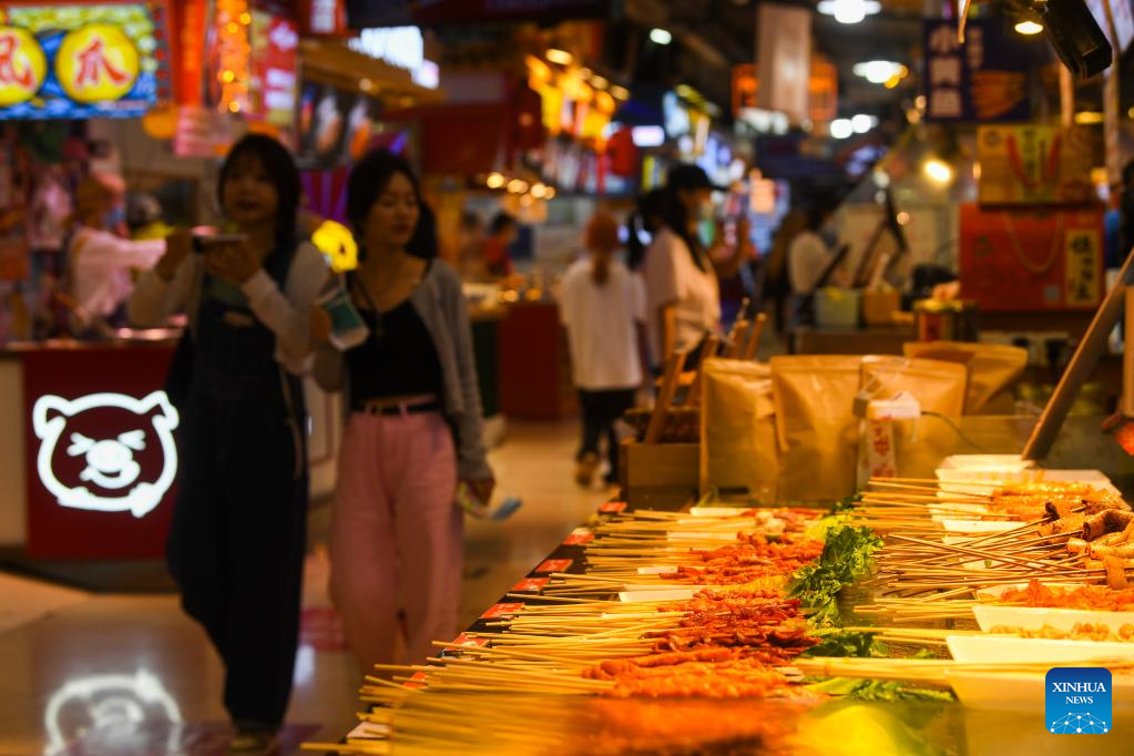 People tour a snack street in southwest China's Chongqing Municipality, June 5, 2022. Under COVID-19 prevention and control measures, Chongqing in southwest China has striven to combine its night economy with culture and tourism in innovative ways, thus enhancing the vitality and attraction of nighttime consumption and turbocharging its development. (Xinhua/Wang Quanchao)