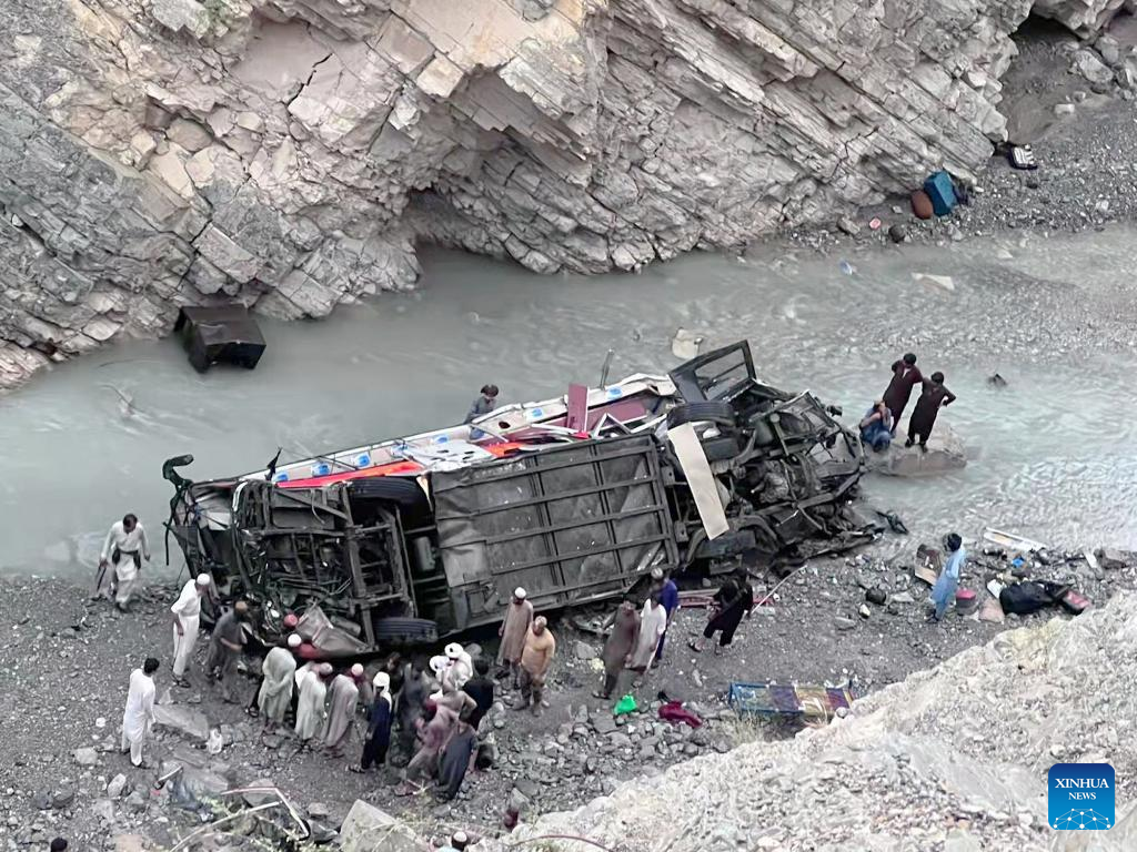 ISLAMABAD, July 3 (Xinhua) -- At least 19 passengers were killed and 12 others injured when a passenger bus fell into a ravine on Sunday near Sherani district of Pakistan's southwestern Balochistan province, local media reported.