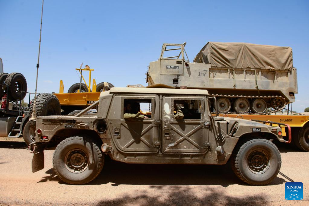 An Israeli military vehicle patrols the border with Lebanon near the Israeli Kibbutz of Malkia, on July 3, 2022. (AYAL MARGOLIN/JINI via Xinhua)