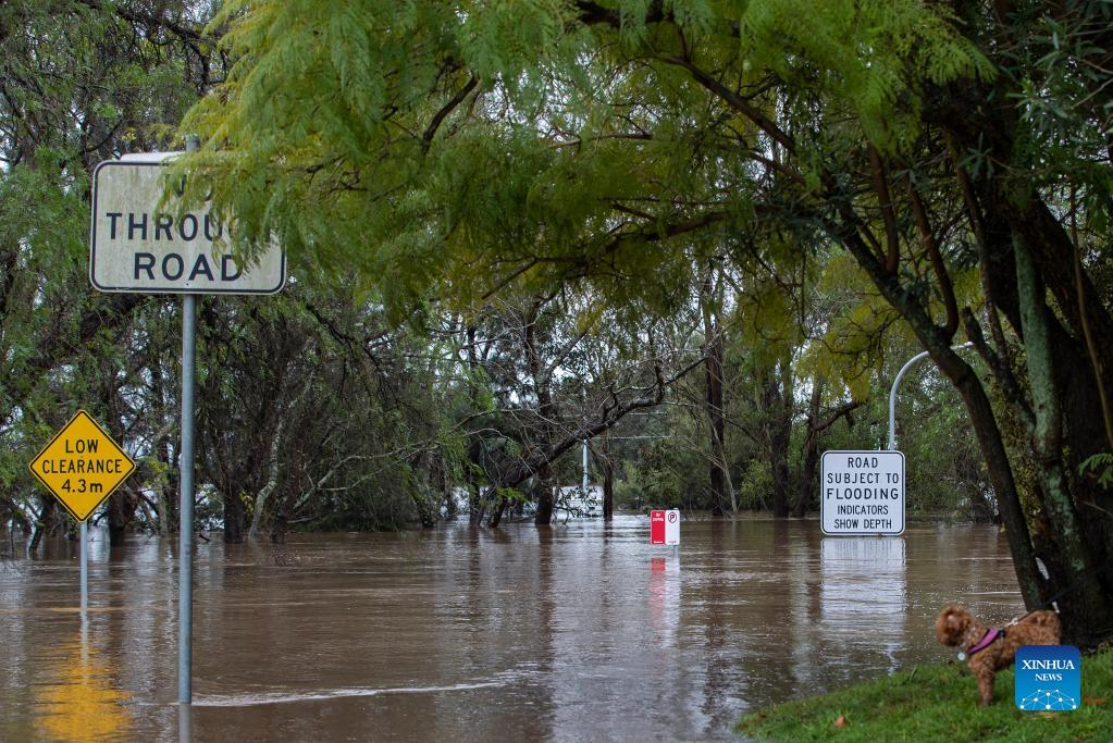 Photo taken on July 4, 2022 shows a flooded road in Windsor, New South Wales, Australia. Heavy rainfall across Australia's southeast coast since Saturday last week has once again inundated Sydney and large parts of southeast New South Wales (NSW) with flash flooding and severe weather. (Xinhua/Bai Xuefei)