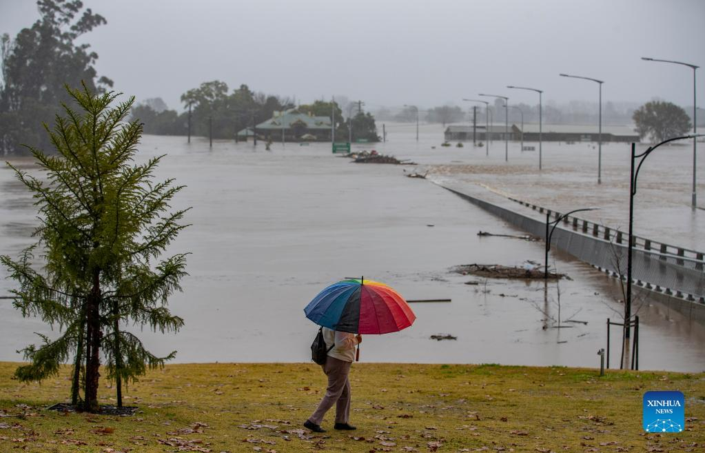 Photo taken on July 4, 2022 shows a flooded area in Windsor, New South Wales, Australia. Heavy rainfall across Australia's southeast coast since Saturday last week has once again inundated Sydney and large parts of southeast New South Wales (NSW) with flash flooding and severe weather. (Xinhua/Bai Xuefei)