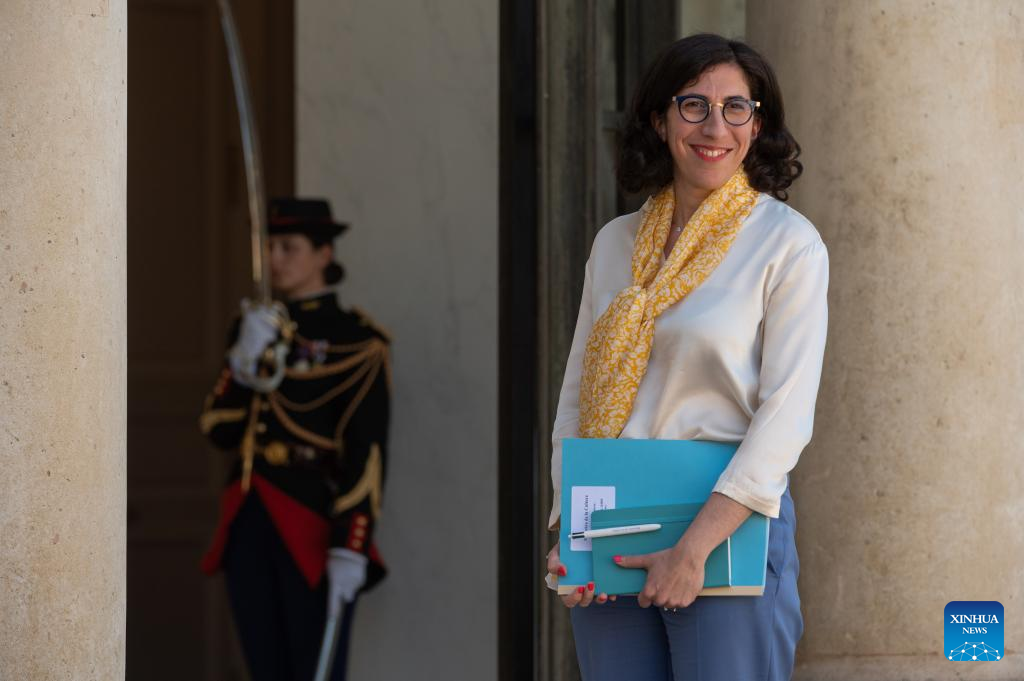 French Culture Minister Rima Abdul-Malak arrives for the first weekly cabinet meeting of the new cabinet in Paris, France, on July 4, 2022. French President Emmanuel Macron reshuffled his government on Monday for the second time in six weeks, the Elysee (office of the president) announced. (Photo by Julien Mattia/Xinhua)